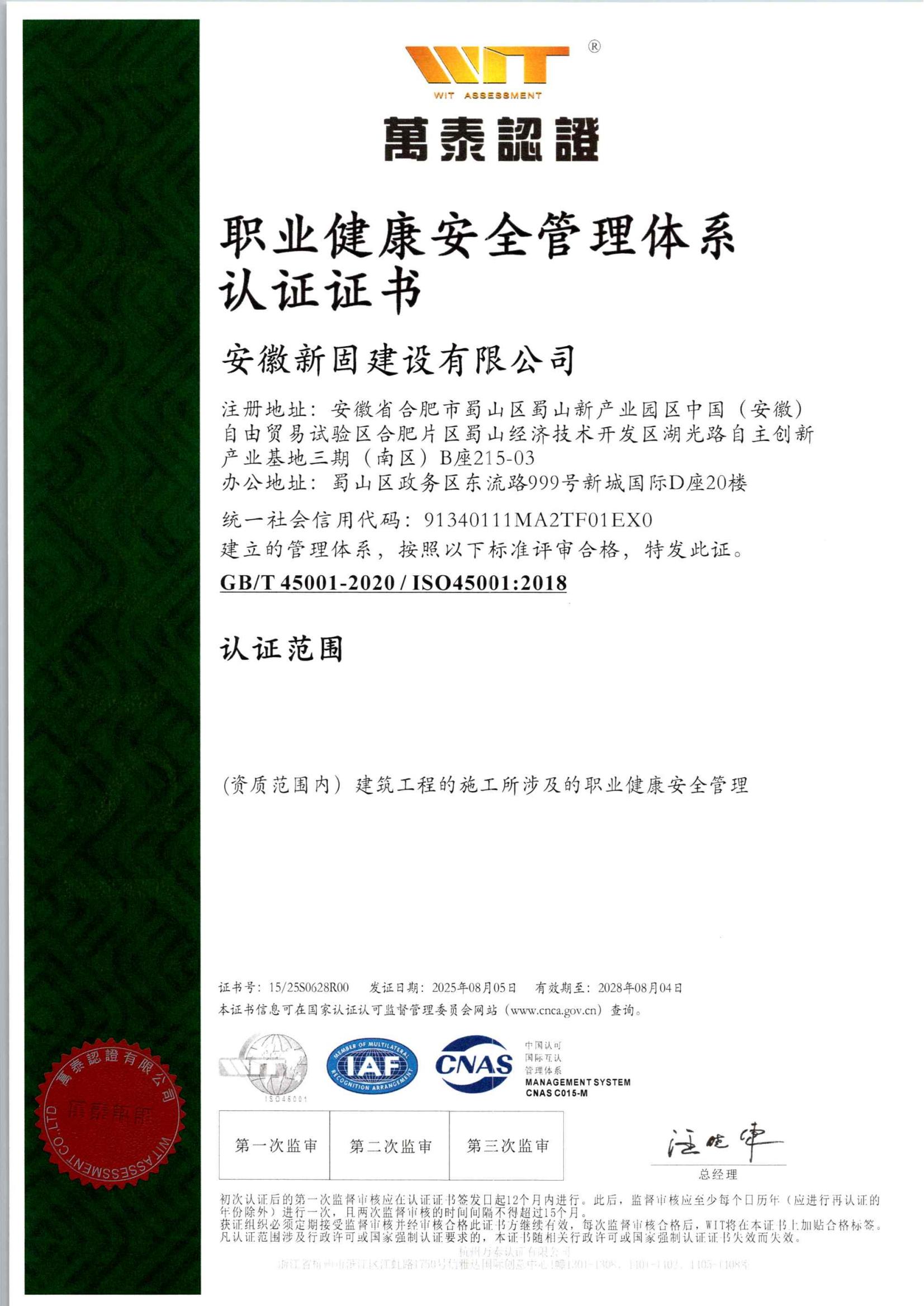 安徽新固獲“職業健康…