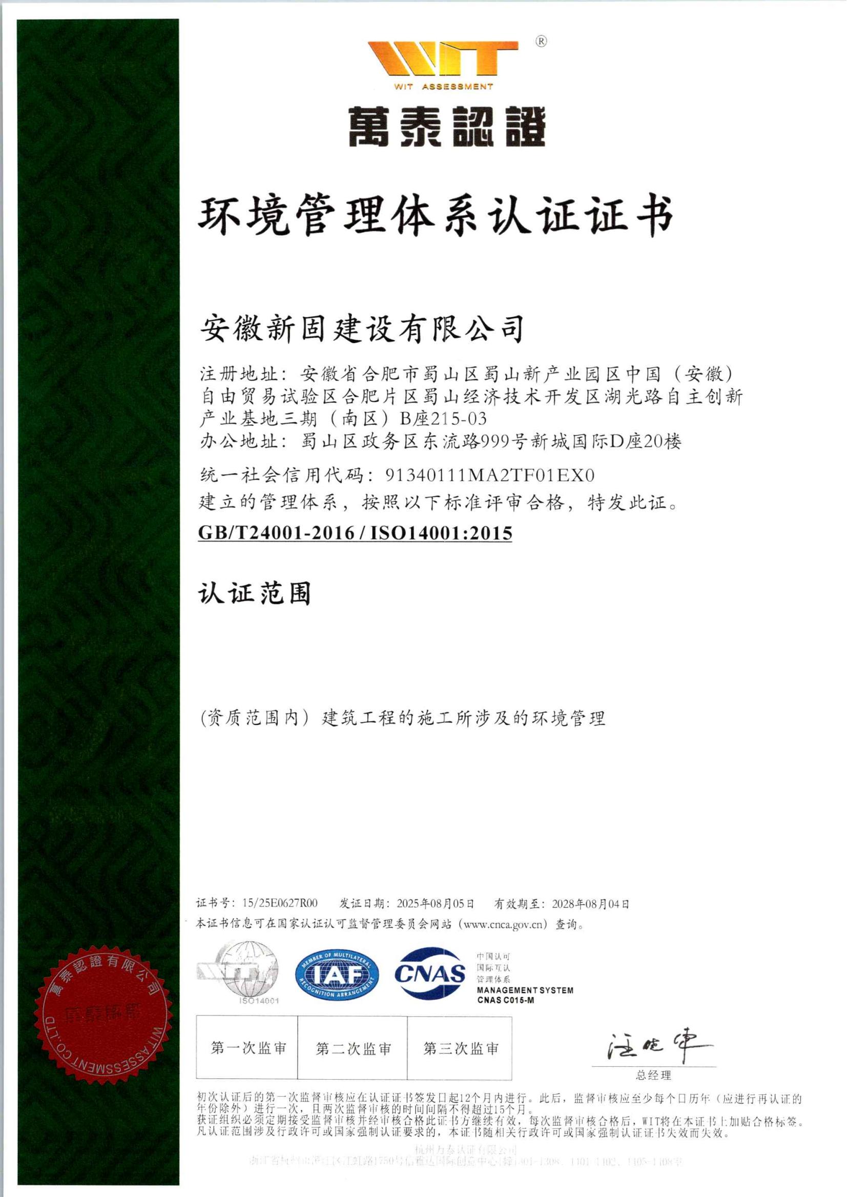 安徽新固獲“環境管理…