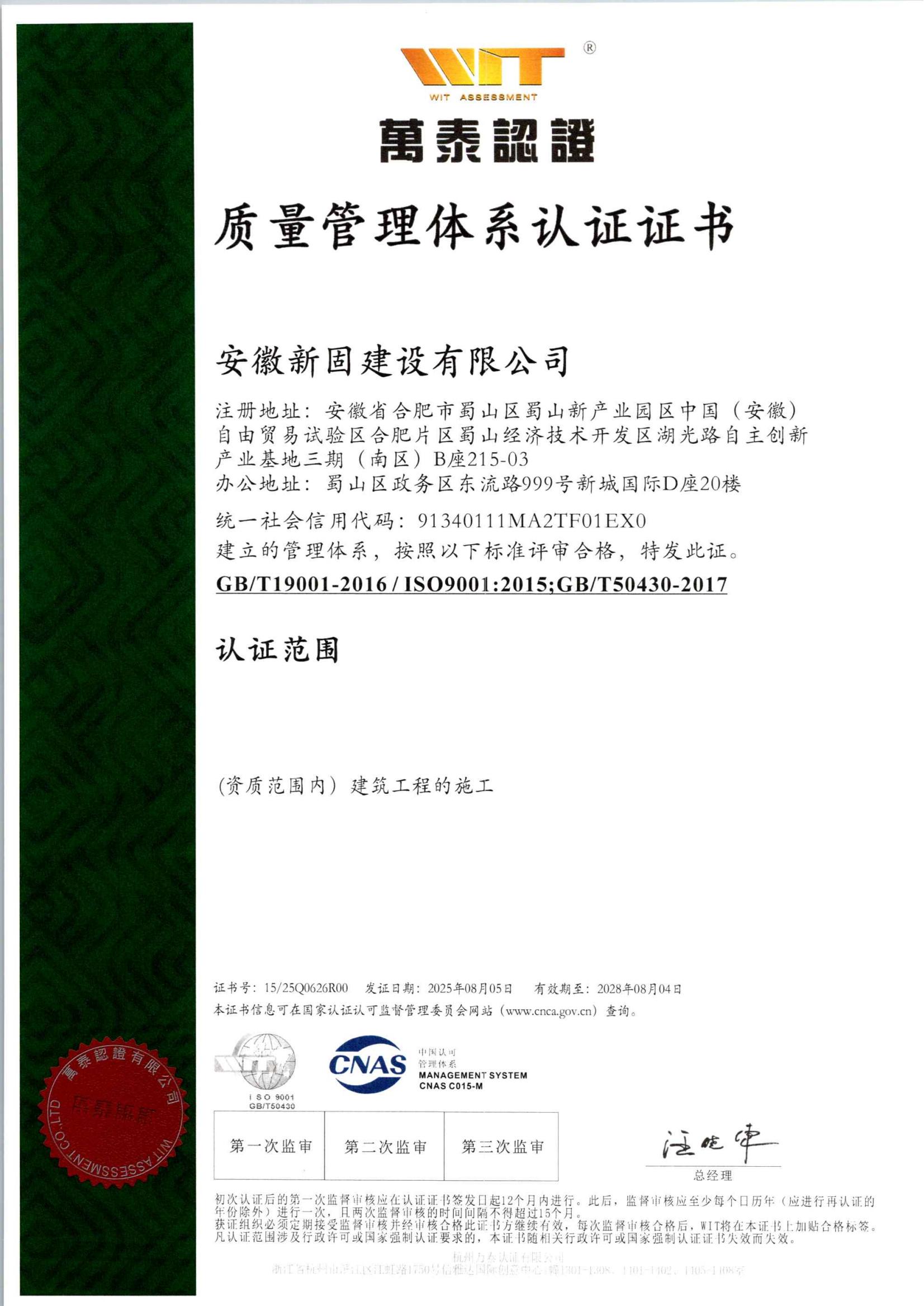 安徽新固獲“質量管理…