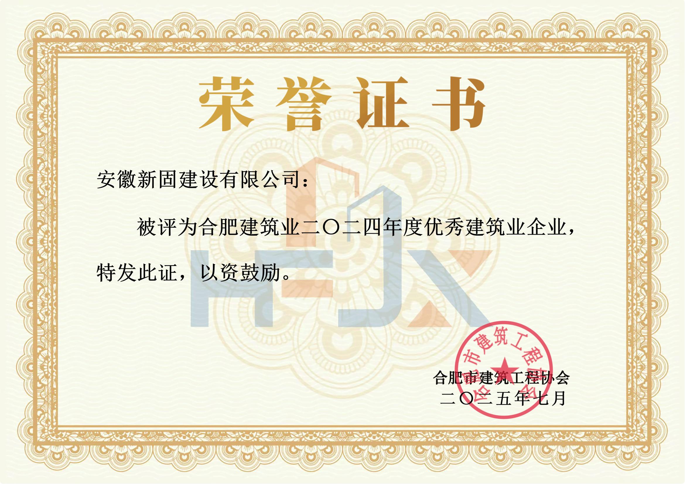 安徽新固獲評“合肥建筑業2024年度優秀建筑業企業”
