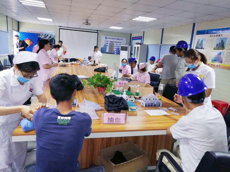 圖為中固建設(shè)?萬科紅郡項(xiàng)目員工參加健康體檢