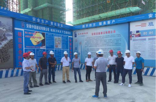 檢查組一行對項目施工現場進行了觀摩。在交流會上,中固建設·皖投萬科天下藝境項目部介紹了公司安全生產標準化等內容,以及項目部結合公司的標準化在項目上具體落實和管控的一些做法。